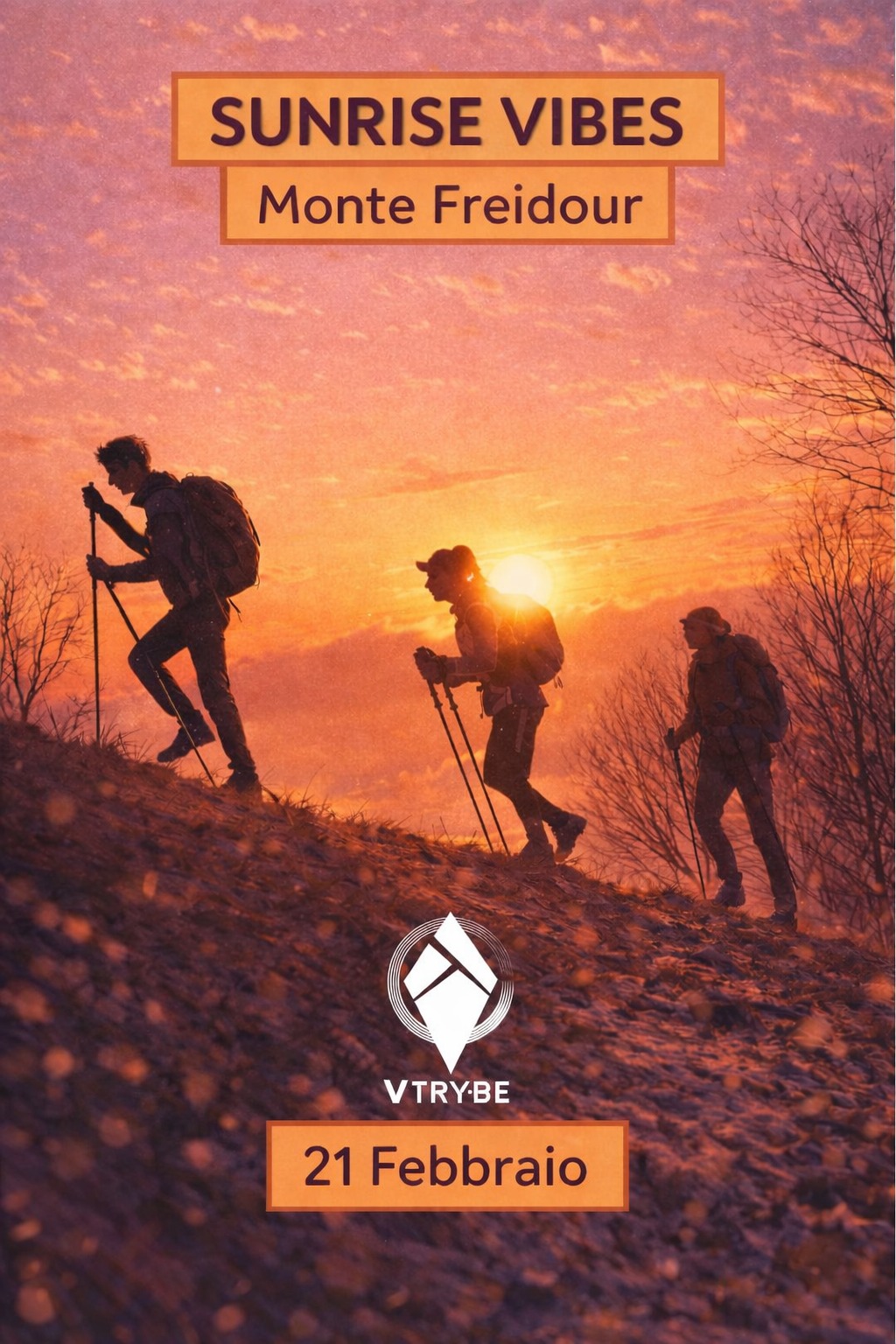 V-TryBe nasce per creare quel gruppo che cerchi sempre quando hai voglia di andare a camminare in montagna in modo easy, senza dover pregare tutte le volte i soliti tipi da salotto… V TryBE è anche il format per sperimentare qualcosa di più avventuroso o particolare, una giornata o un weekend che si possa raccontare agli amici da salotto!!